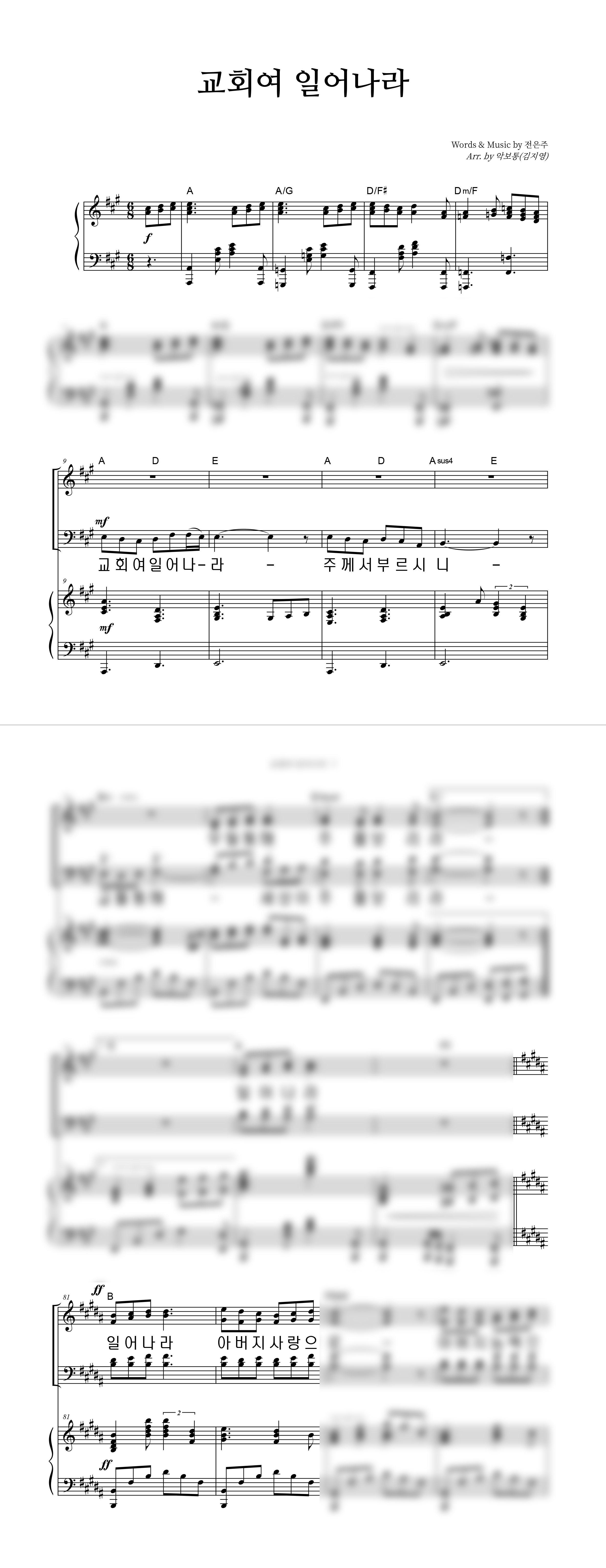 | 교회여 일어나라 | 성가 2부 + 피아노 반주 |