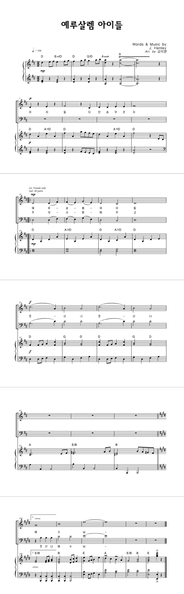 | 예루살렘 아이들 | 성가 2부 + 피아노 반주 |