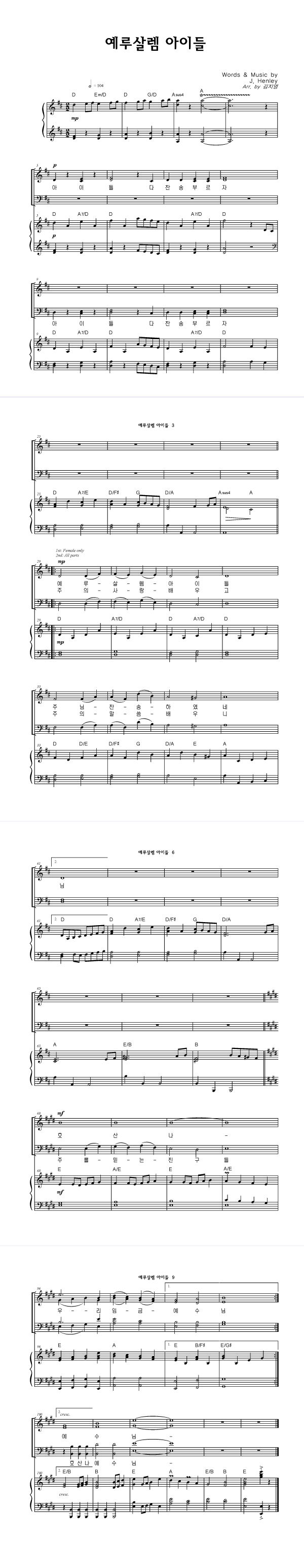 | 예루살렘 아이들 | 성가 3부 + 피아노 반주 |