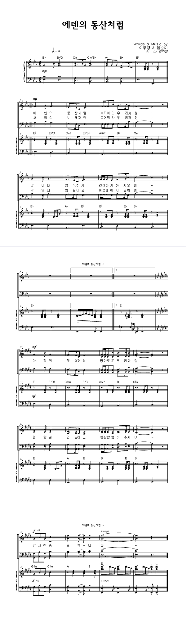 | 에덴의 동산처럼 | 성가 3부 + 피아노 반주 |