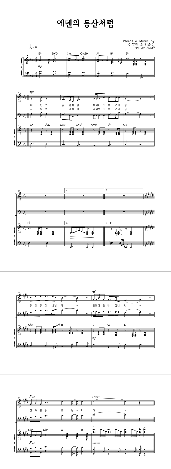 | 에덴의 동산처럼 | 성가 2부 + 피아노 반주 |