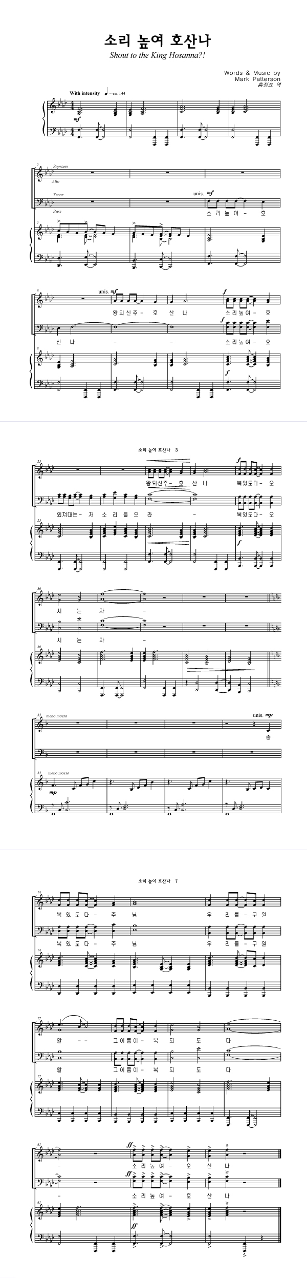 '소리 높여 호산나' 의 다른 악보형식