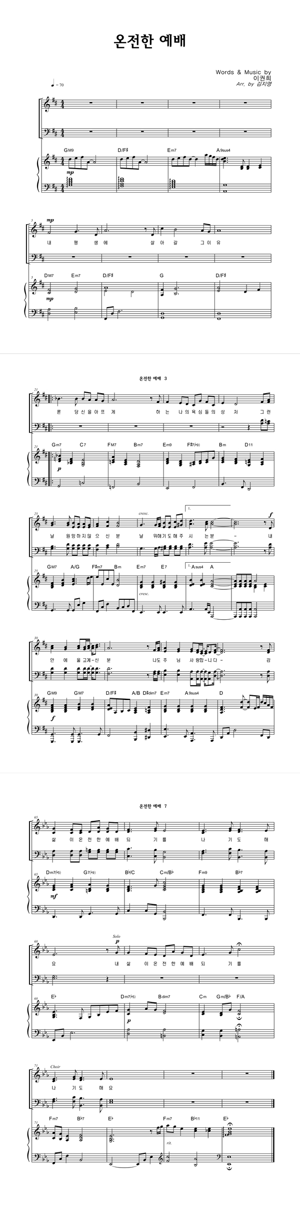 | 온전한 예배 | 성가 3부 + 피아노 반주 |