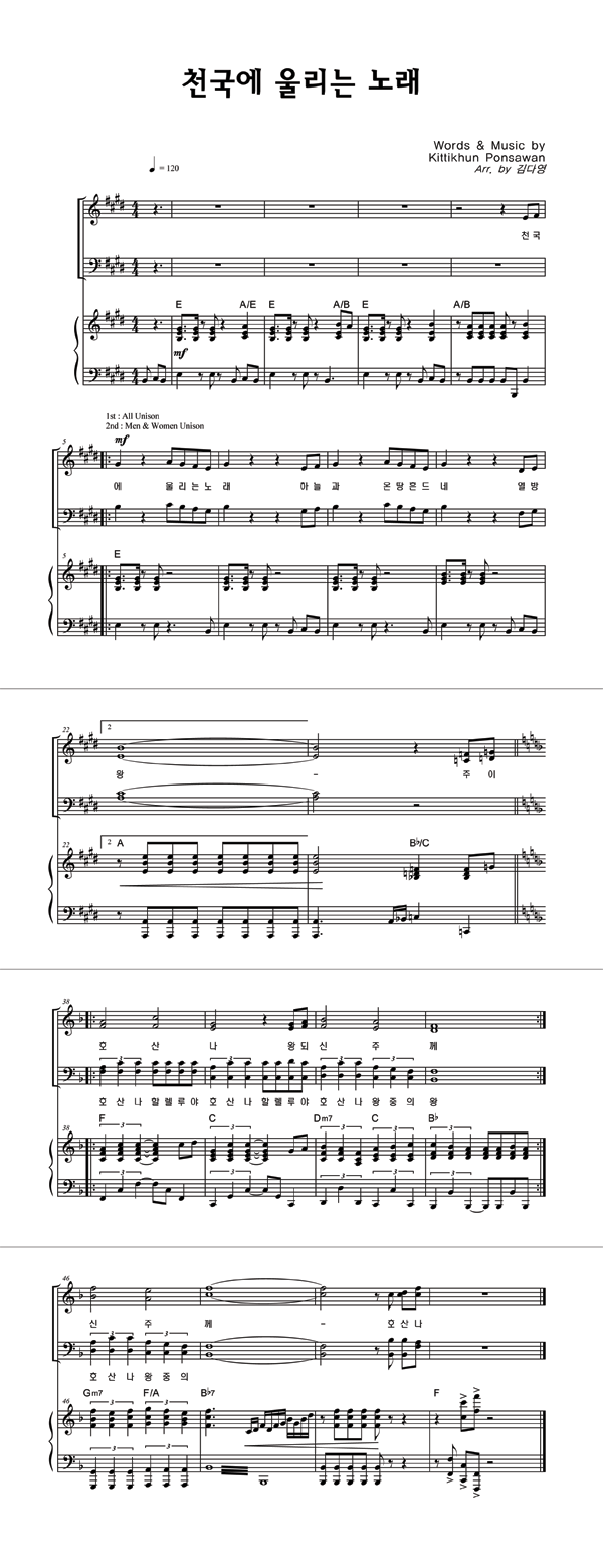 | 천국에 울리는 노래 | 성가 3부 + 피아노 반주 |