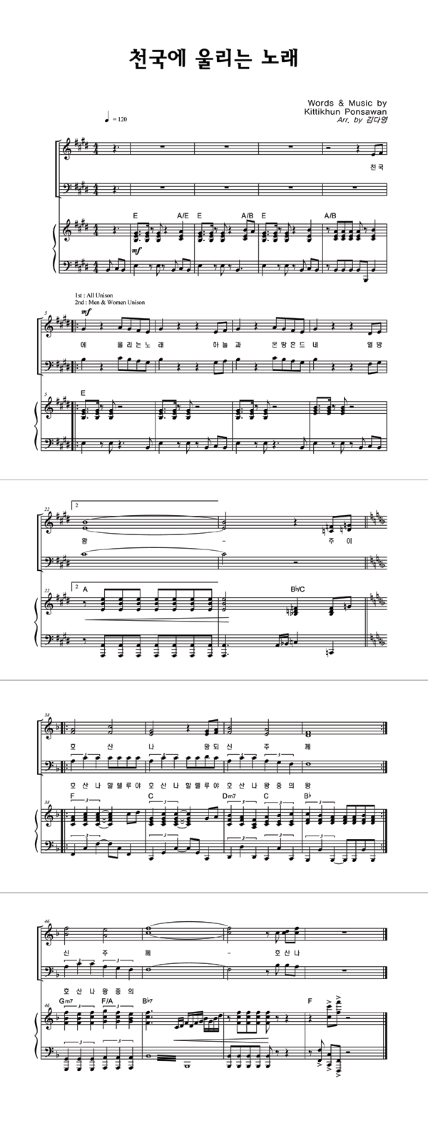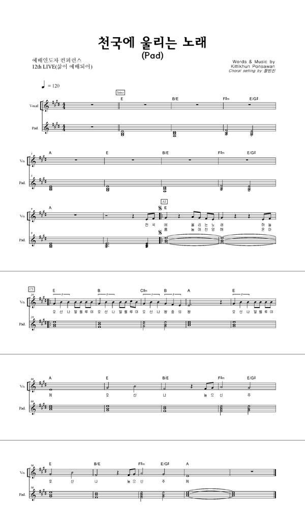 | 천국에 울리는 노래 | 성가 4부 + 피아노 반주 |