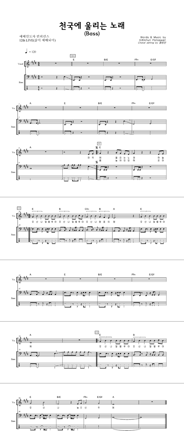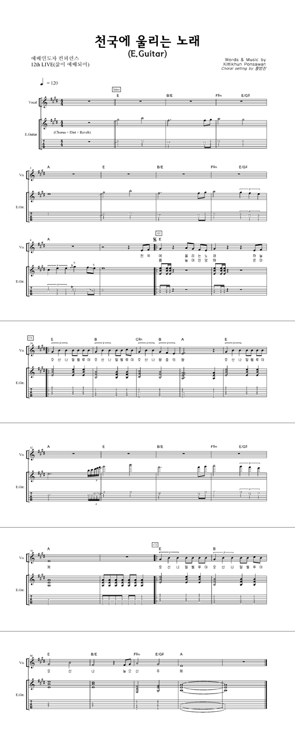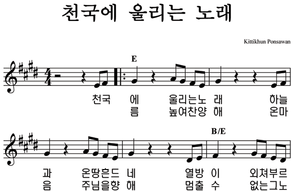'천국에 울리는 노래' 의 다른 악보형식