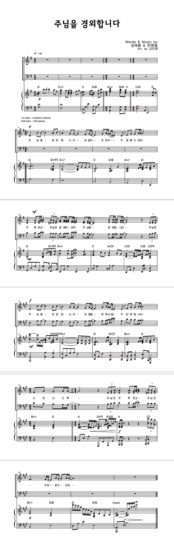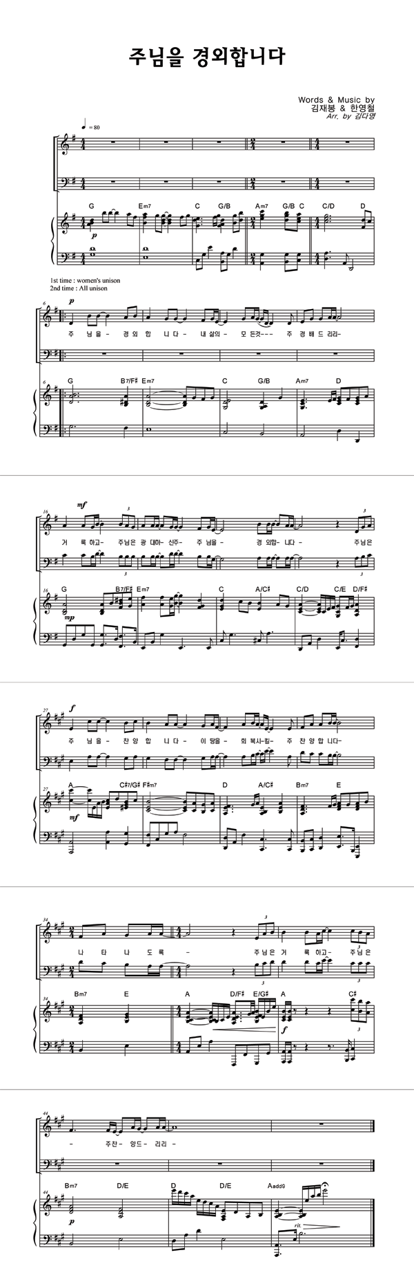 | 주님을 경외합니다 | 성가 3부 + 피아노 반주 |