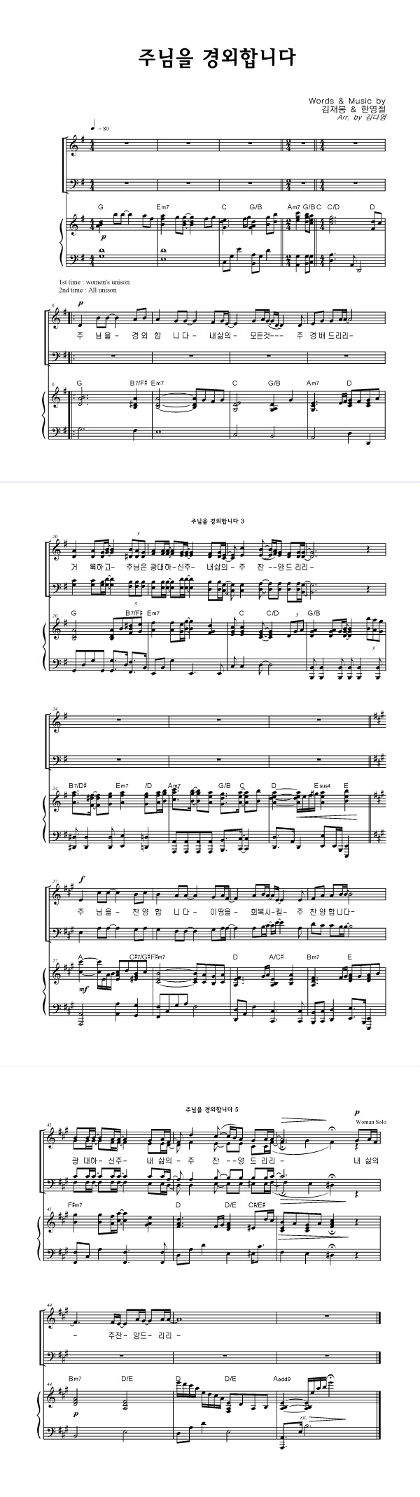| 주님을 경외합니다 | 성가 2부 + 피아노 반주 |