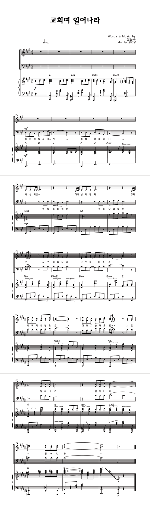 | 교회여 일어나라 | 성가 2부 + 피아노 반주 |