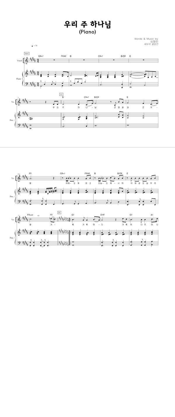 | 우리 주 하나님 | 성가 2부 + 피아노 반주 |