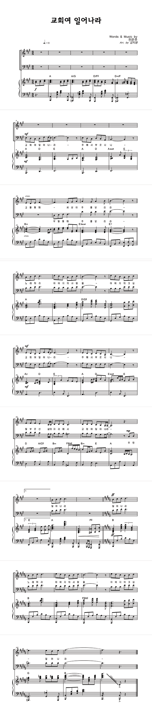 | 교회여 일어나라 | 성가 3부 + 피아노 반주 |