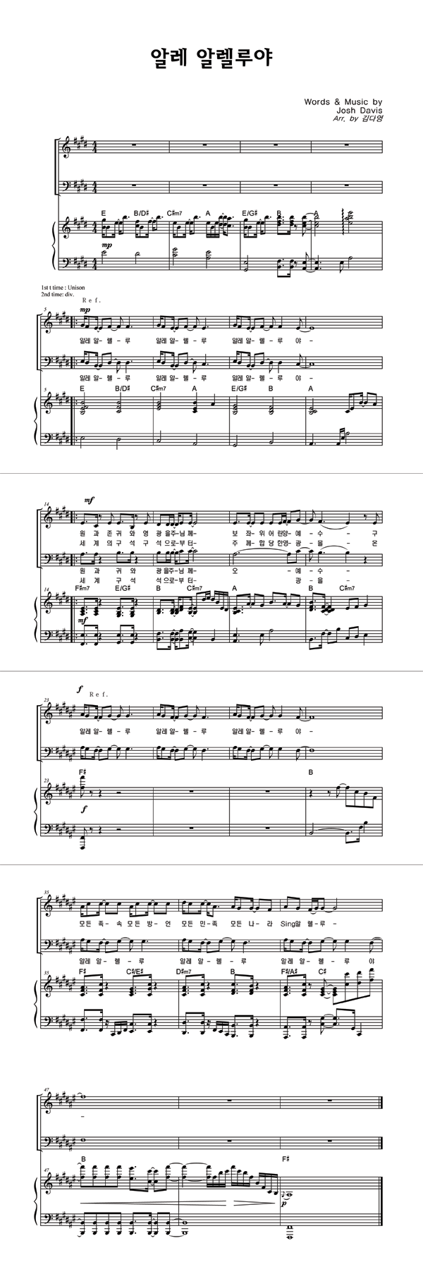 | 알레 알렐루야 | 성가 2부 + 피아노 반주 |