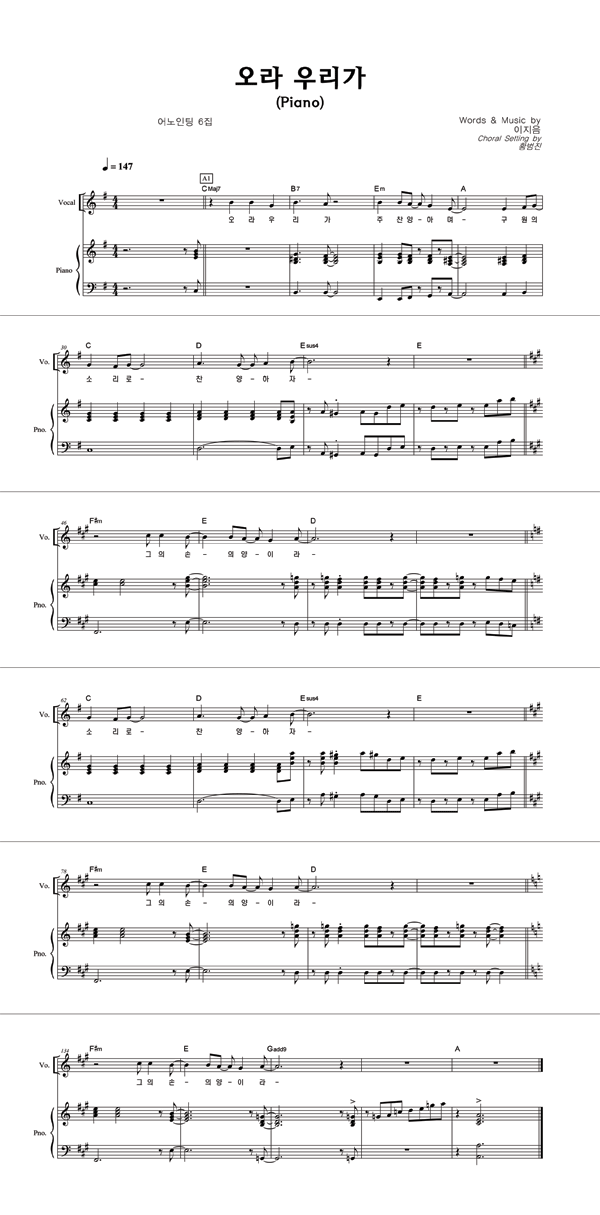 | 다시 한번 | 성가 2부 + 피아노 반주 |