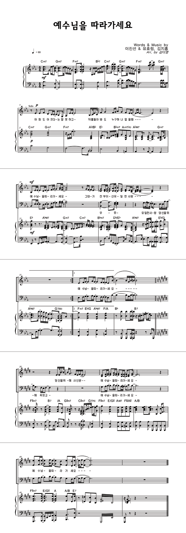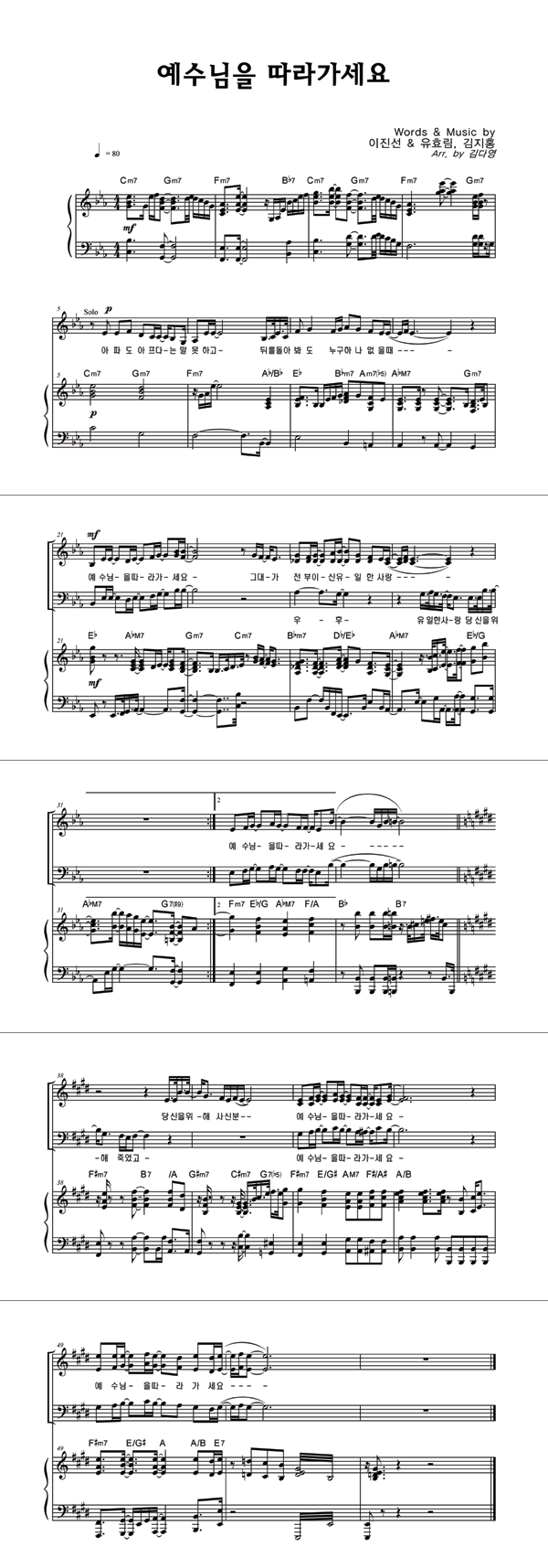| 예수님을 따라가세요 | 성가 4부 + 피아노 반주 |