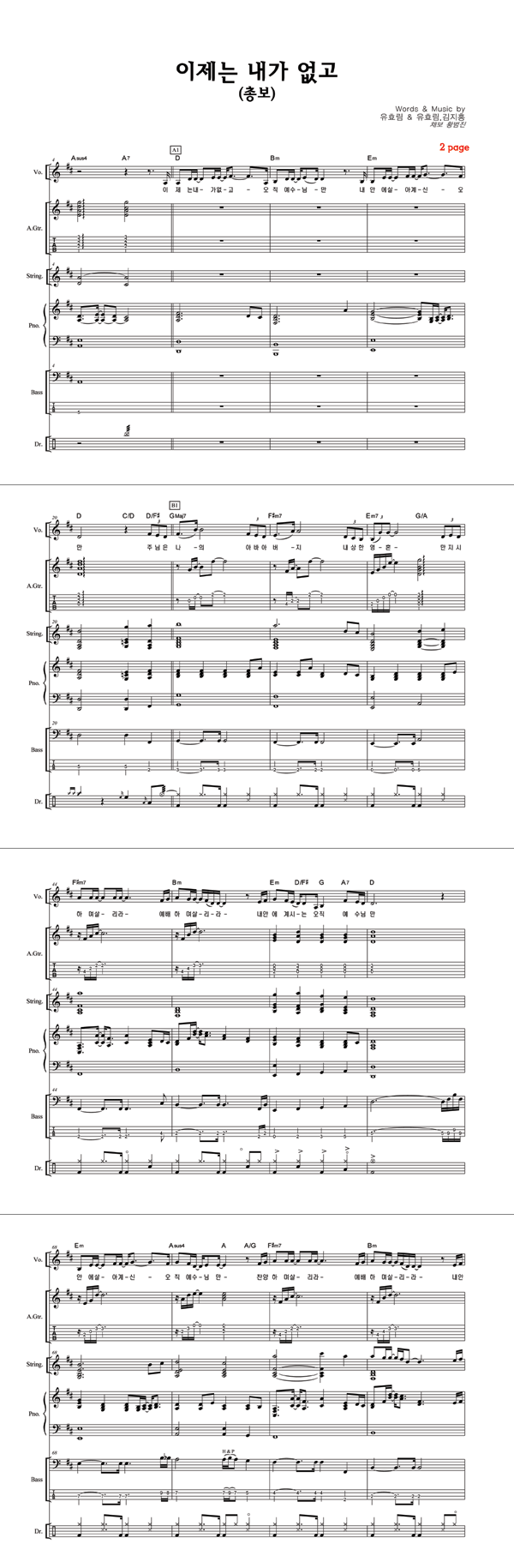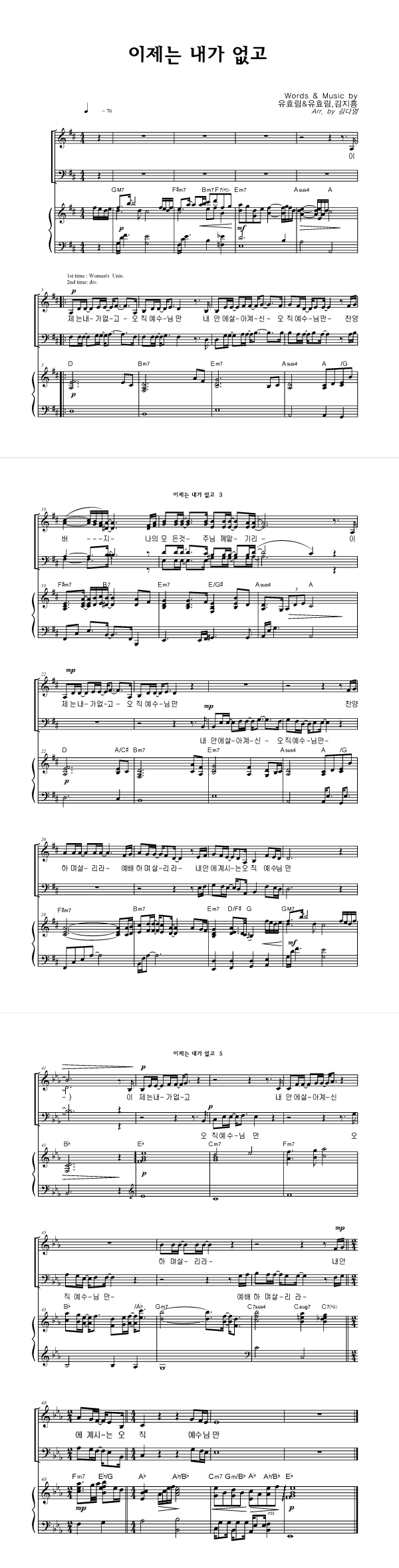 | 이제는 내가 없고 | 성가 2부 + 피아노 반주 |