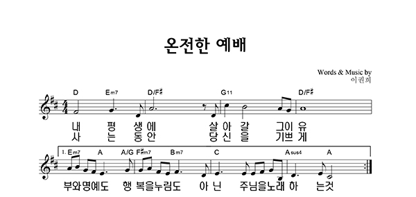 | 온전한 예배 | 성가 4부 + 피아노 반주 |