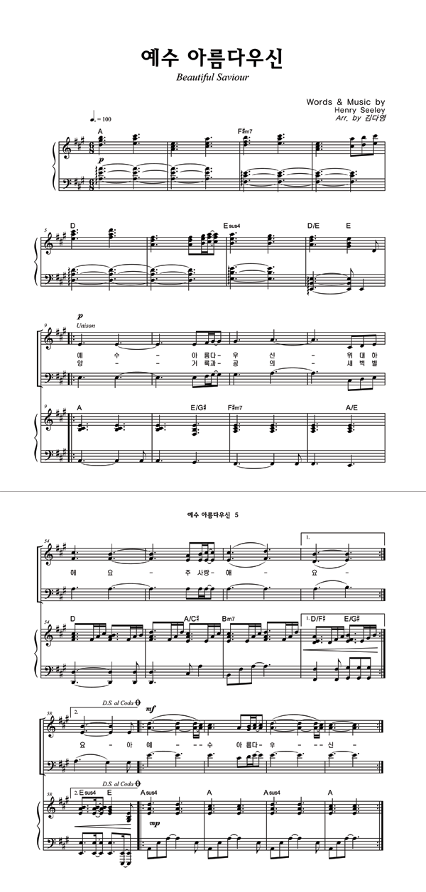| 예수 아름다우신 | 성가 2부 + 피아노 반주 |