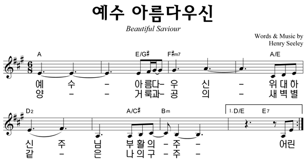 | 예수 아름다우신 큰글씨 | 성가 4부 + 피아노 반주 |