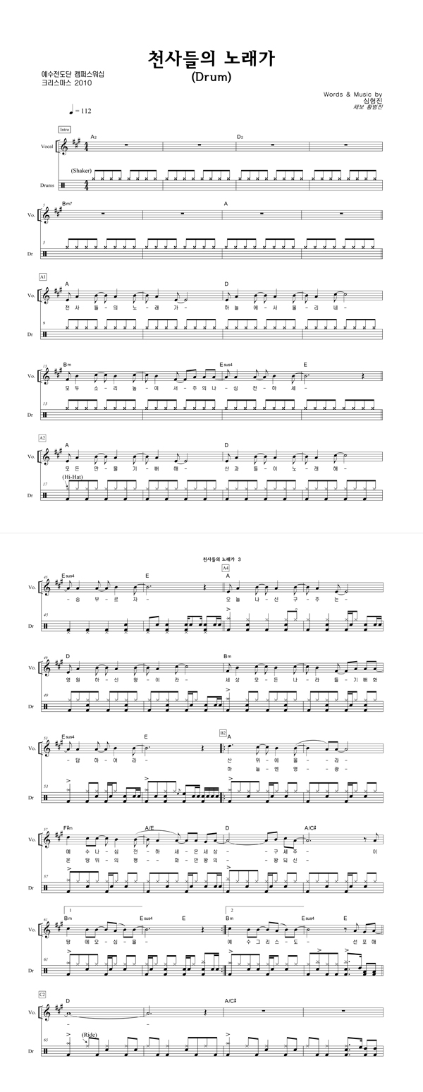 | 천사들의 노래가 | 성가 4부 + 피아노 반주 |
