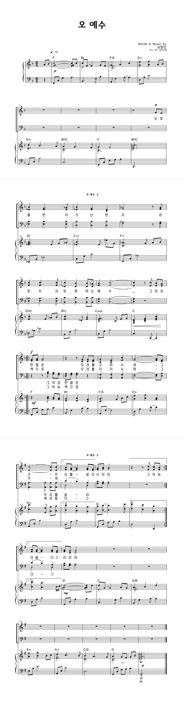 | 오 예수 | 성가 3부 + 피아노 반주 |