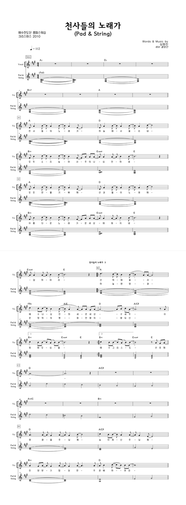 | 천사들의 노래가 | 성가 4부 + 피아노 반주 |