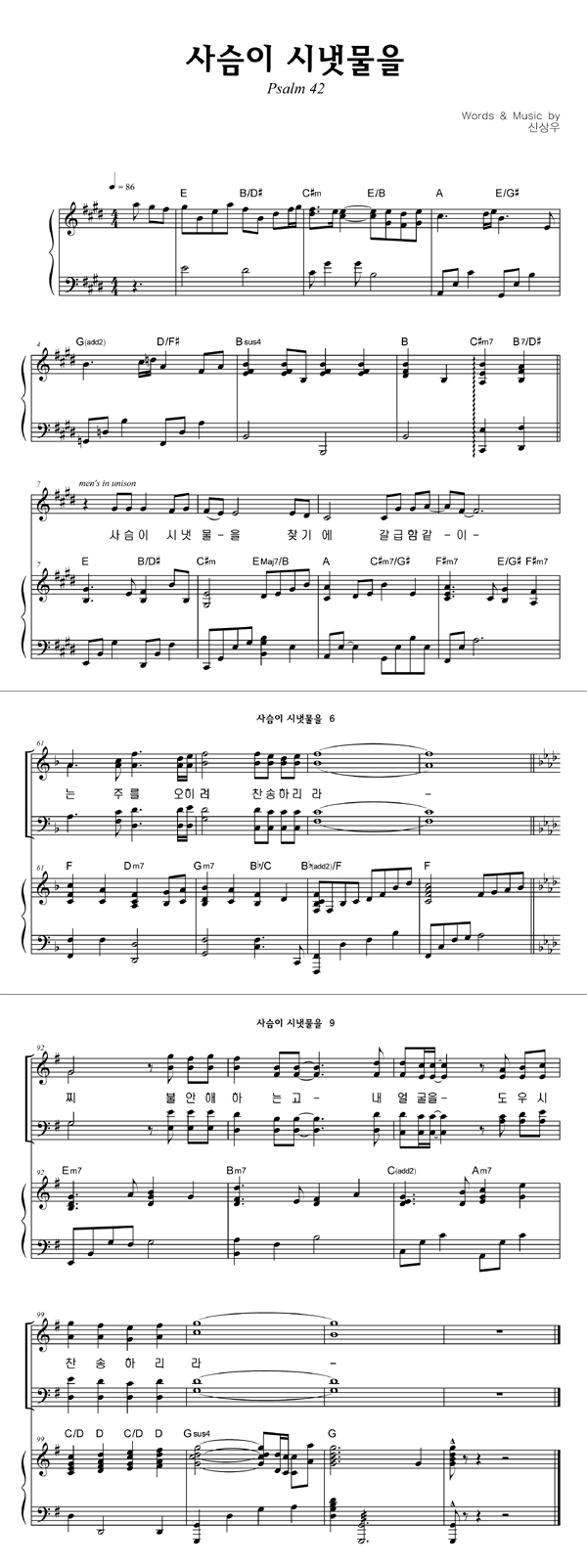 | 사슴이 시냇물을 | 성가 4부 + 피아노 반주 |