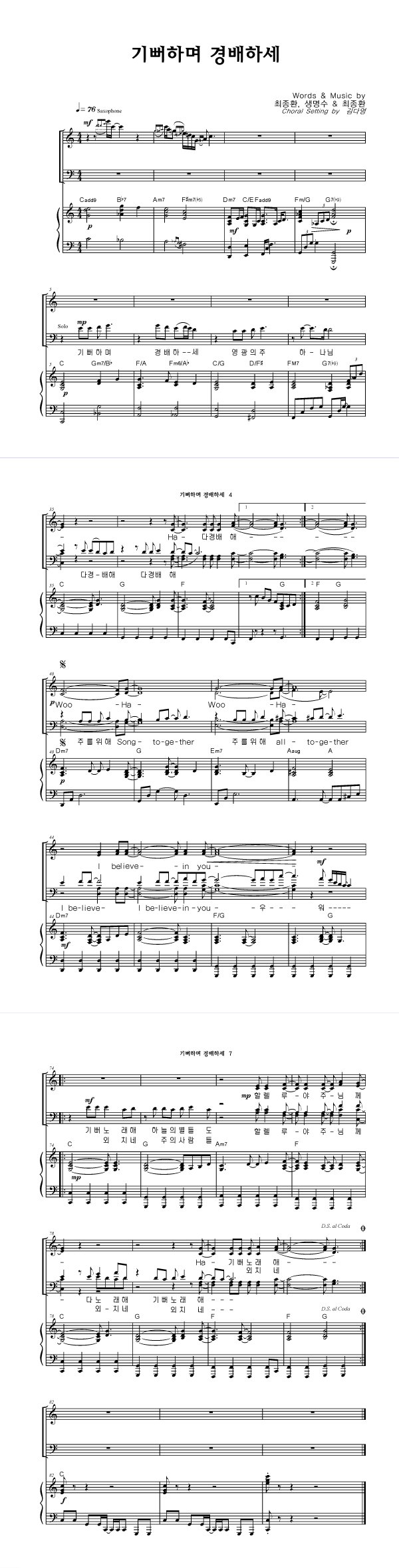 | 기뻐하며 경배하세 | 성가 4부 + 피아노 반주 |