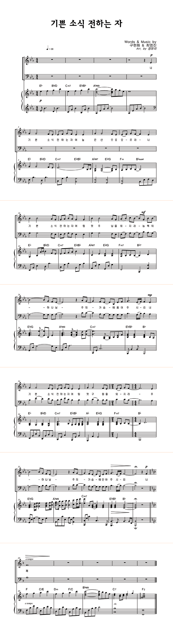 | 기쁜 소식 전하는 자 | 성가 2부 + 피아노 반주 |