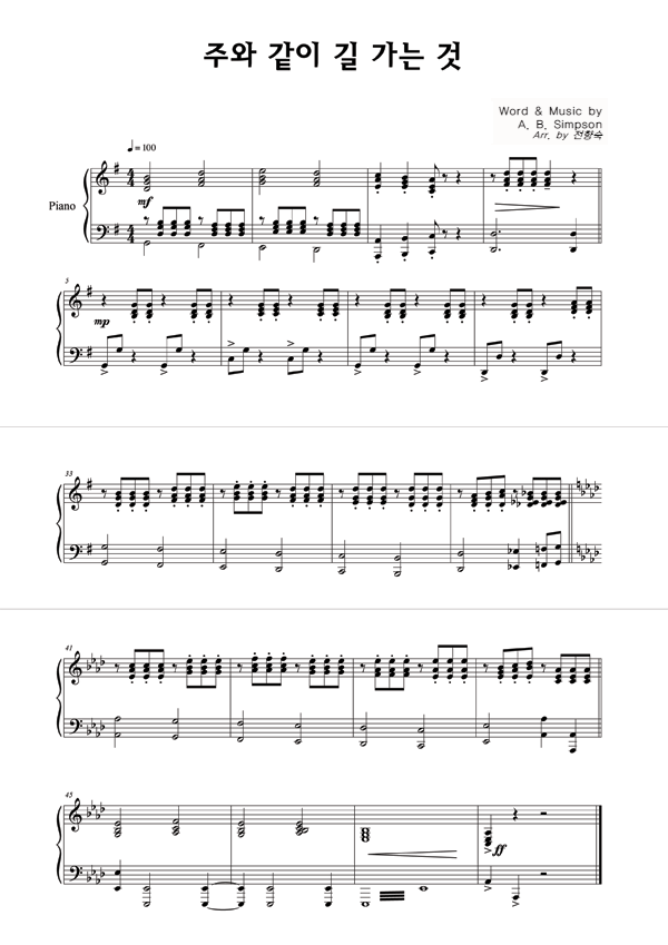 '주와 같이 길 가는 것' 의 다른 악보형식