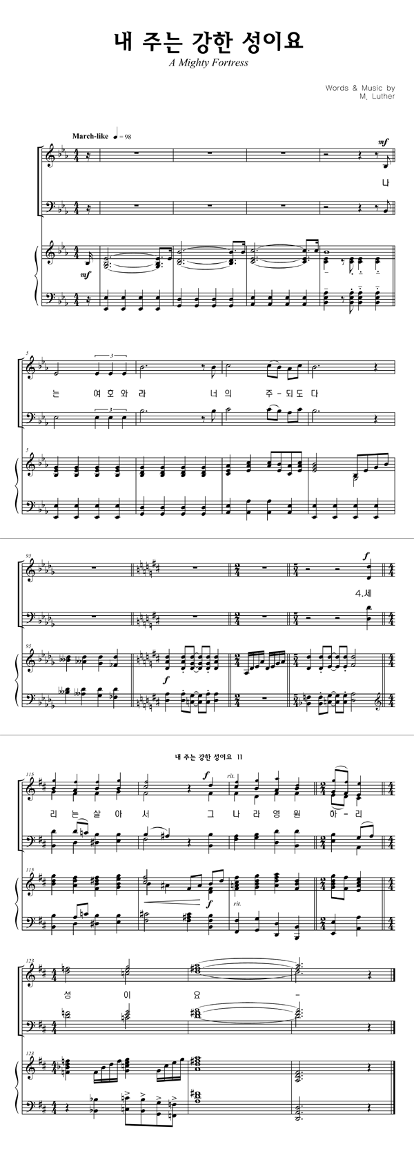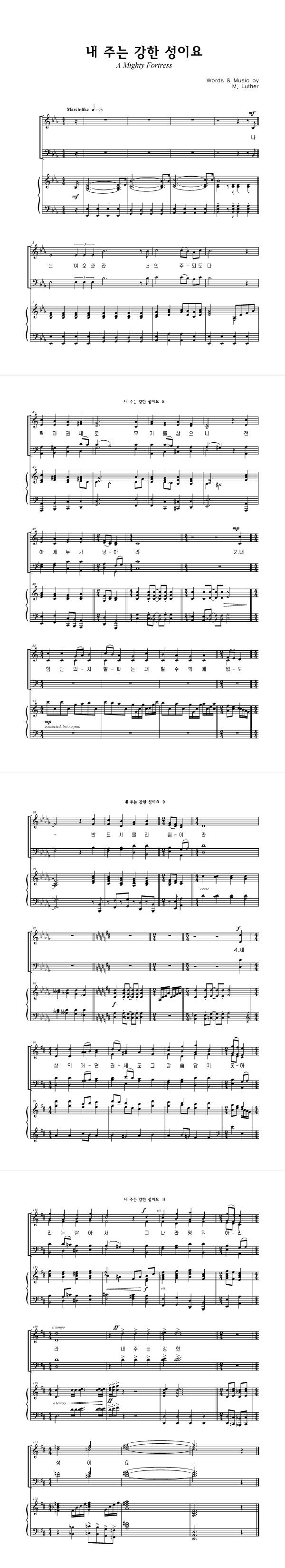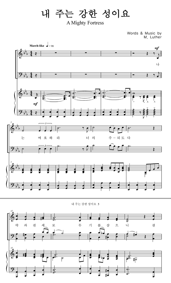| 내 주는 강한 성이요 | 성가 4부 + 피아노 반주 |