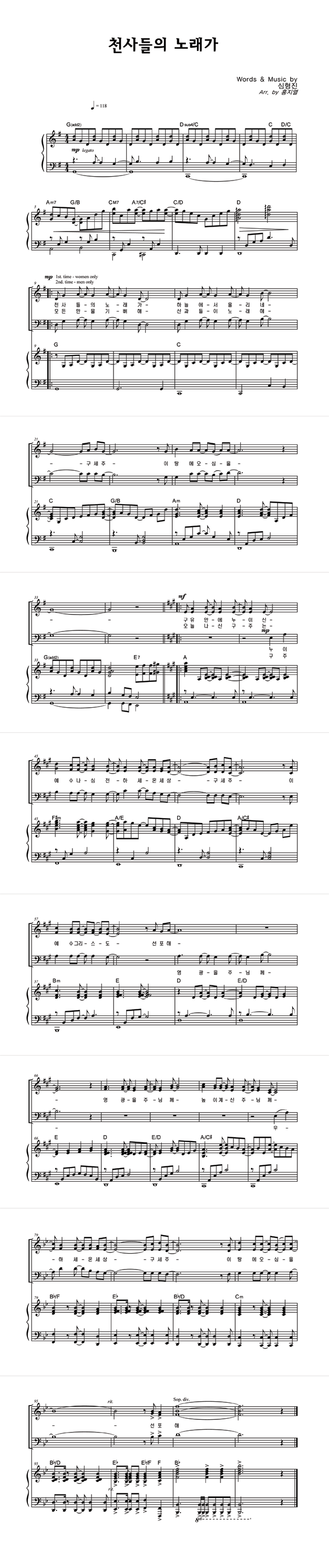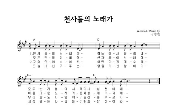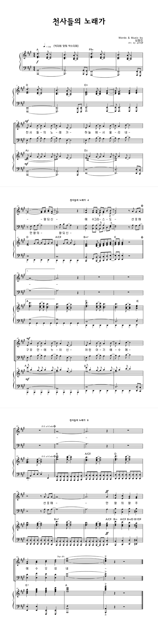 | 천사들의 노래가 | 성가 4부 + 피아노 반주 |