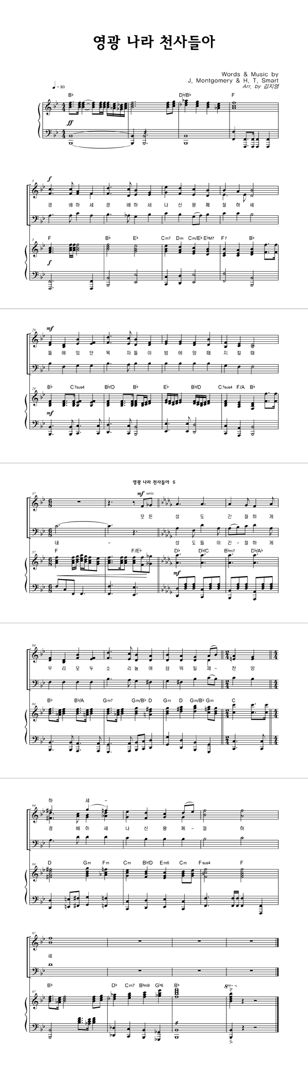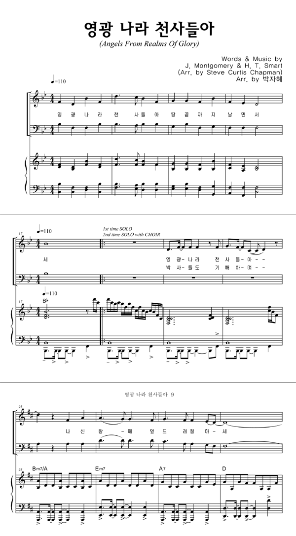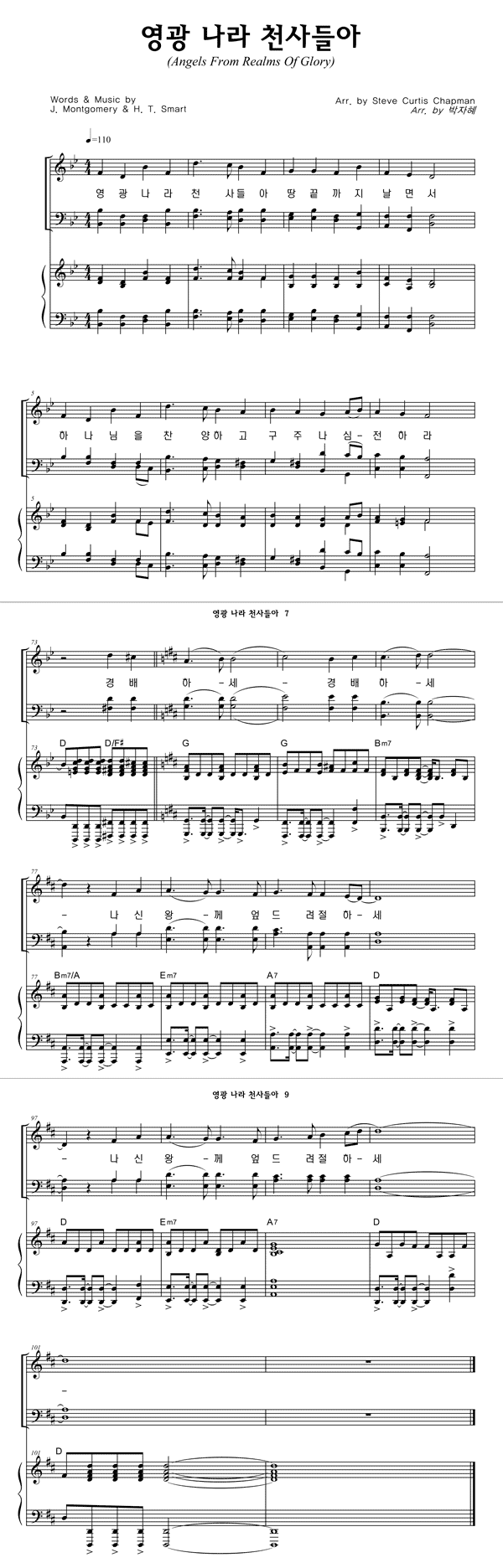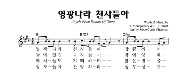 | 영광나라 천사들아 (Steven Curtis Chapman 편곡) | 성가 3부 + 피아노 반주 |