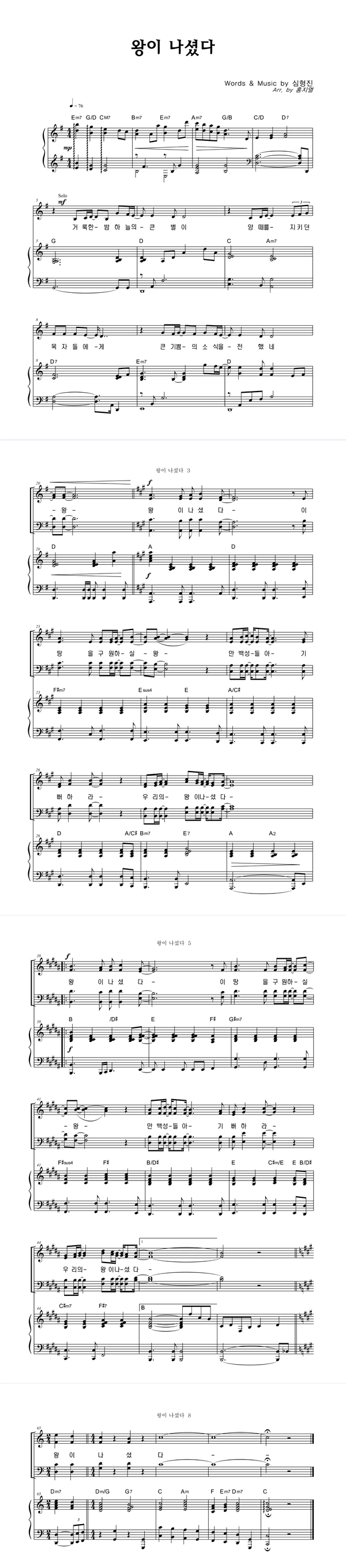 | 왕이 나셨다 | 성가 4부 + 피아노 반주 |