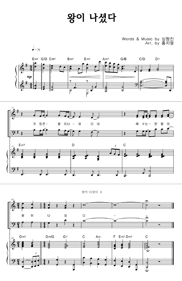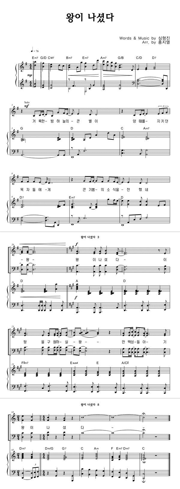 | 왕이 나셨다 | 성가 3부 + 피아노 반주 |