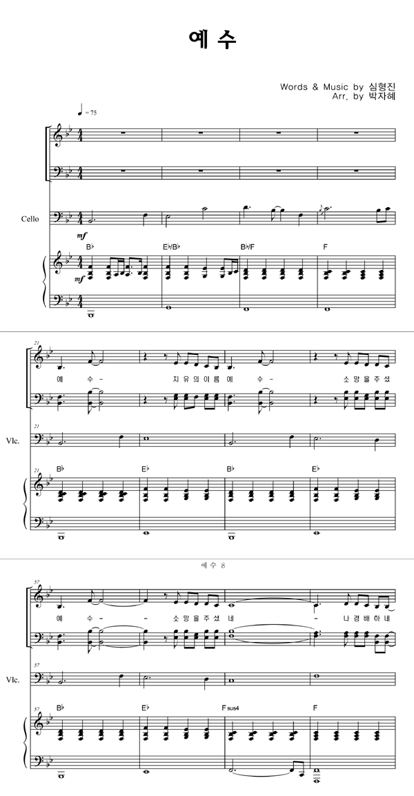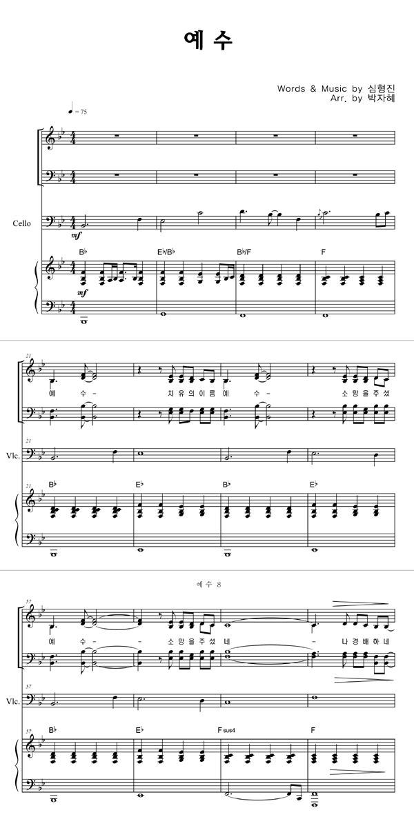 | 예수 큰글씨 | 성가 4부 + 피아노 반주 |