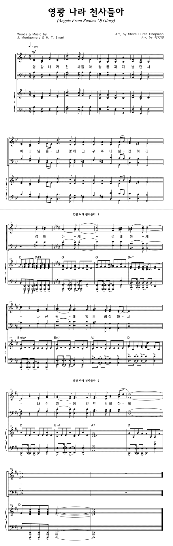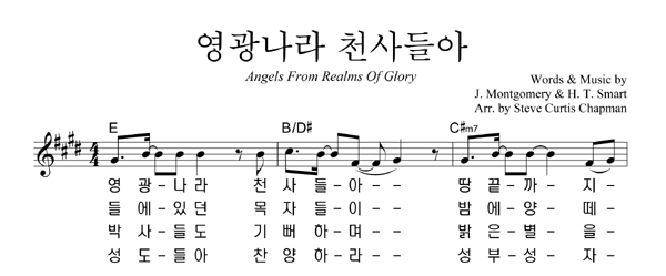 | 영광나라 천사들아 (Steven Curtis Chapman 편곡) | 성가 4부 + 피아노 반주 |