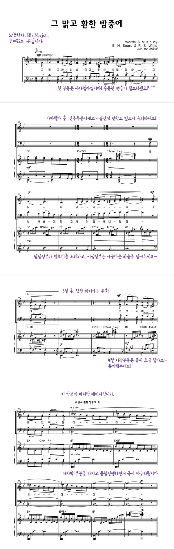 | 그 맑고 환한 밤 중에 | 성가 2부 + 피아노 반주 |