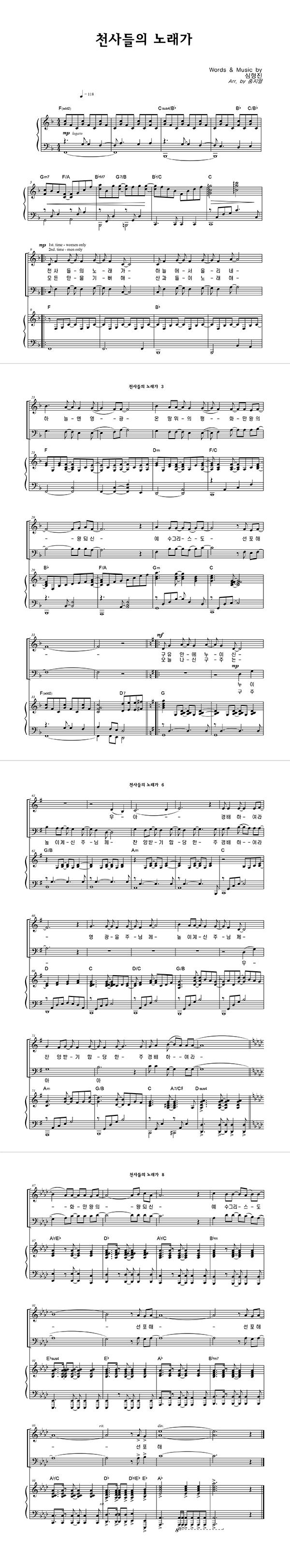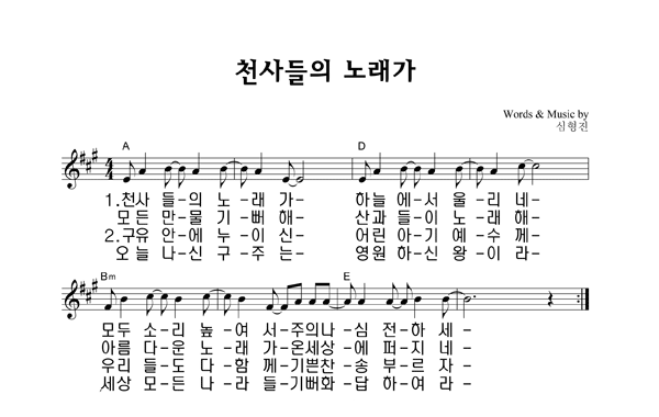 | 천사들의 노래가 | 성가 4부 + 피아노 반주 |