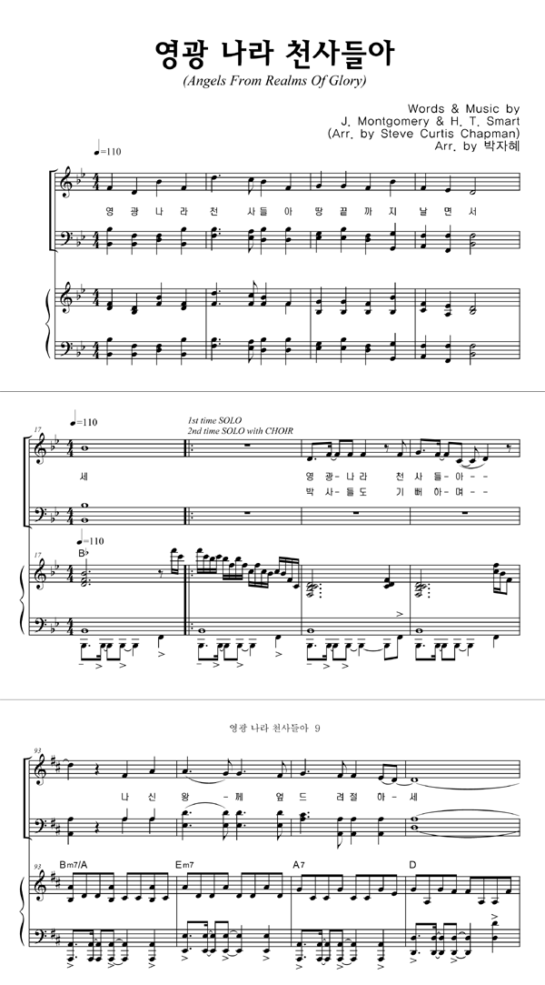 | 영광나라 천사들아 (Steven Curtis Chapman 편곡) | 성가 3부 + 피아노 반주 |