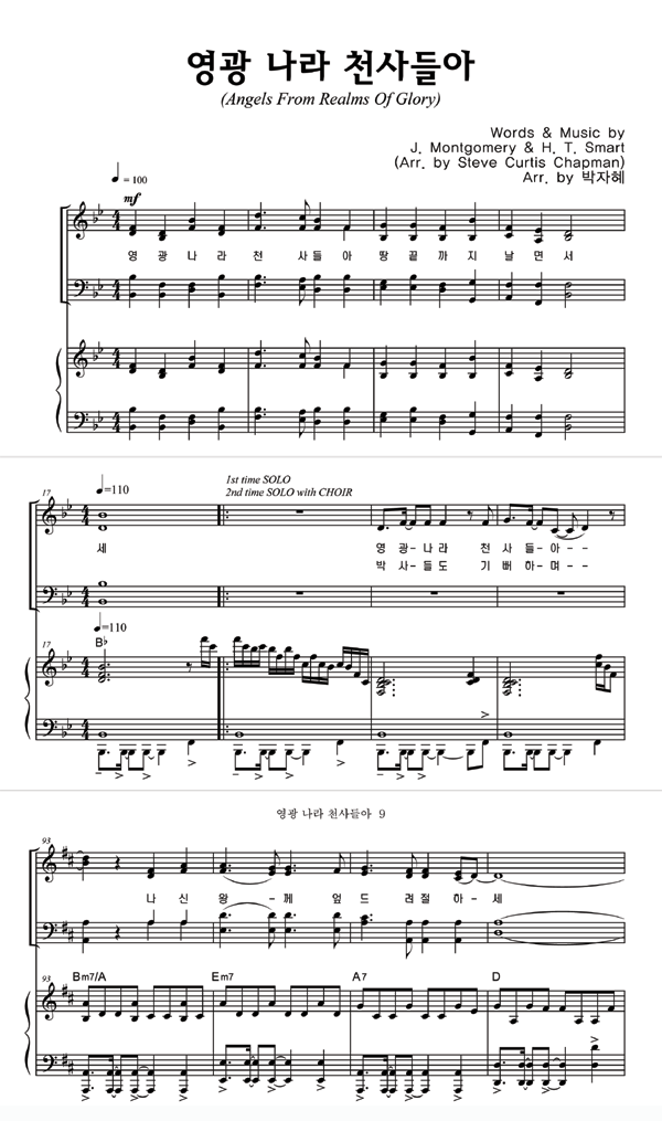 | 영광나라 천사들아 (Steven Curtis Chapman 편곡) | 성가 4부 + 피아노 반주 |