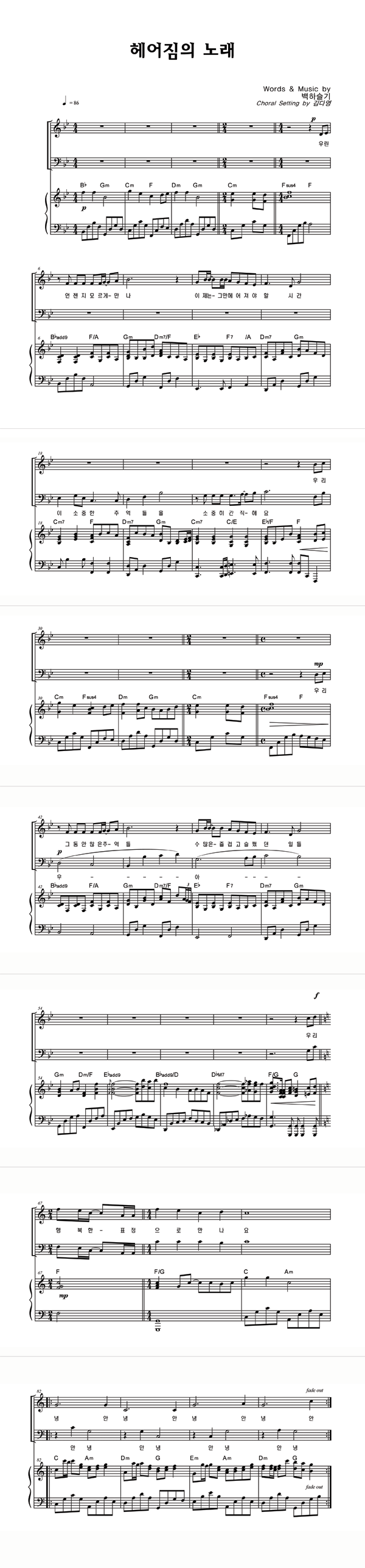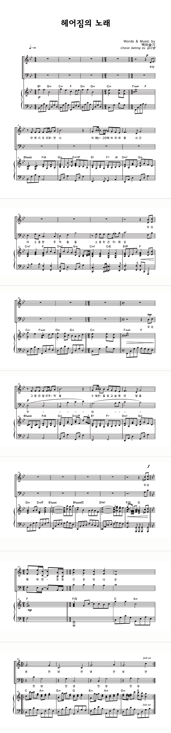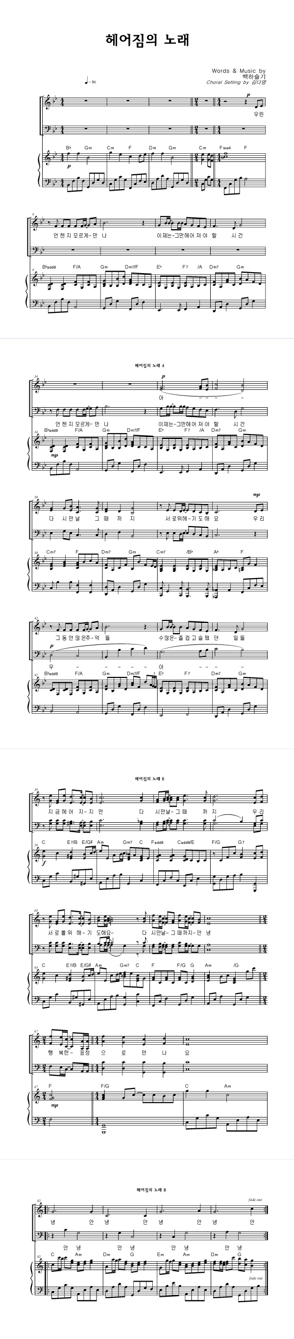 | 헤어짐의 노래 | 성가 2부 + 피아노 반주 |