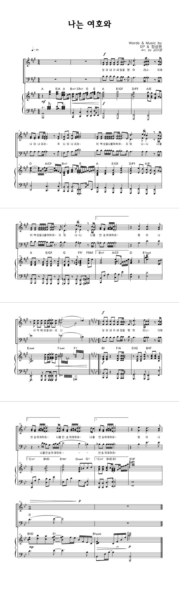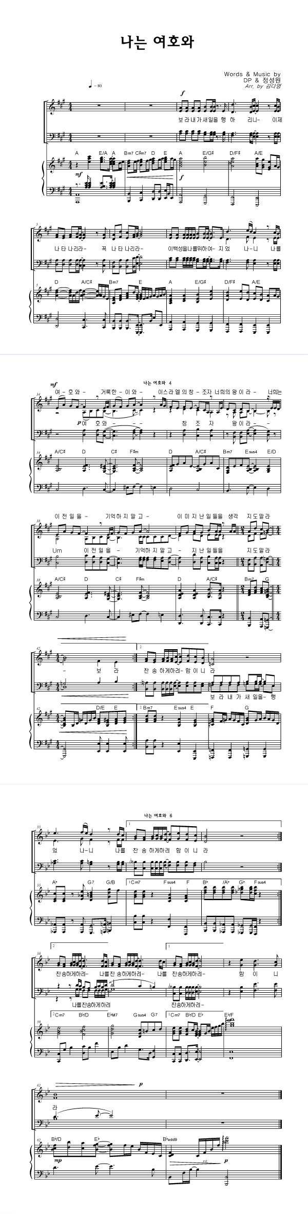 | 나는 여호와 | 성가 4부 + 피아노 반주 |