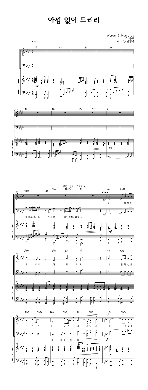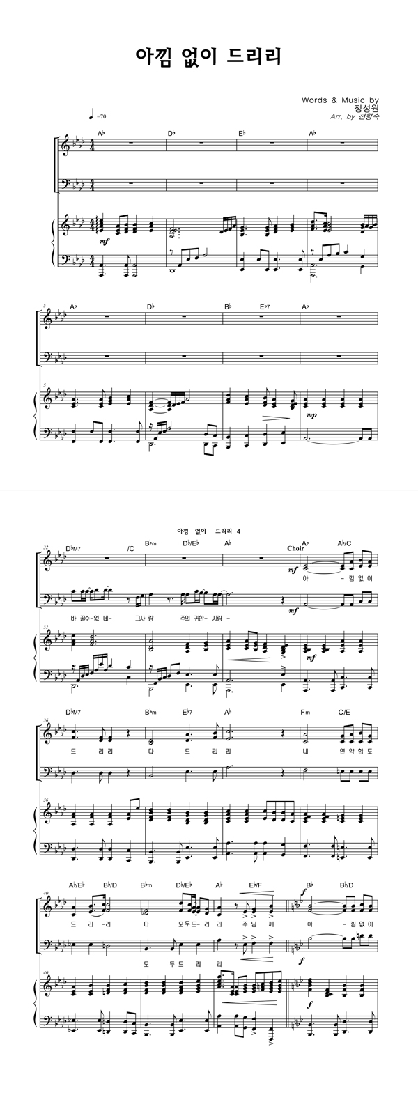 | 아낌 없이 드리리 | 성가 4부 + 피아노 반주 |
