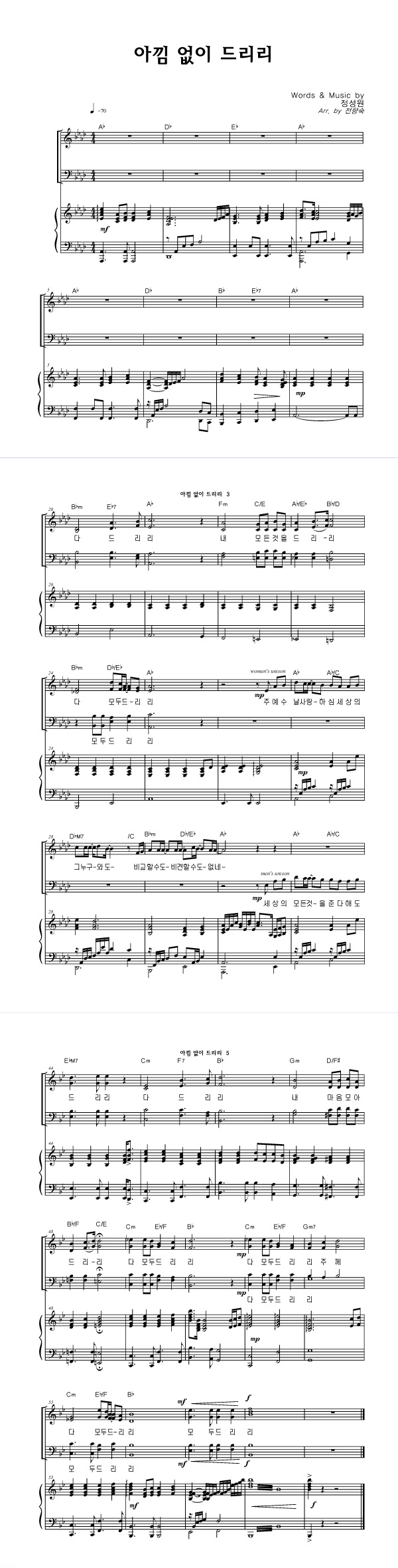 | 아낌 없이 드리리 | 성가 3부 + 피아노 반주 |