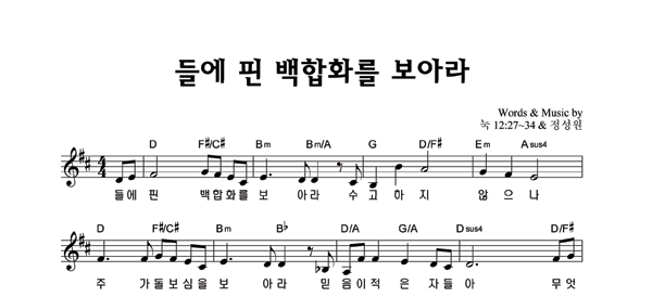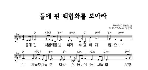 | 들에 핀 백합화를 보아라 | 성가 2부 + 피아노 반주 |