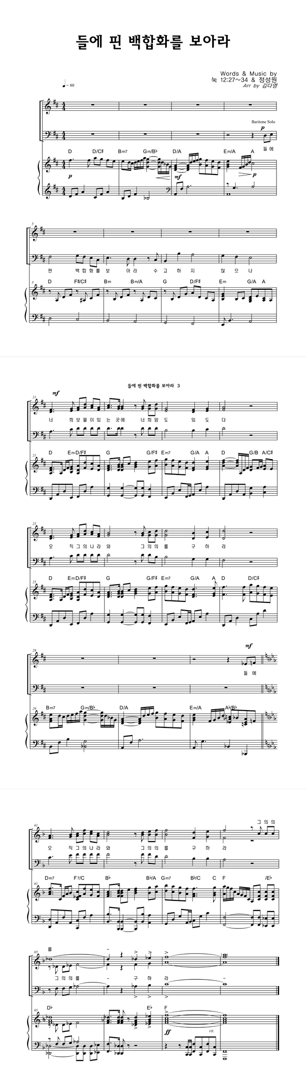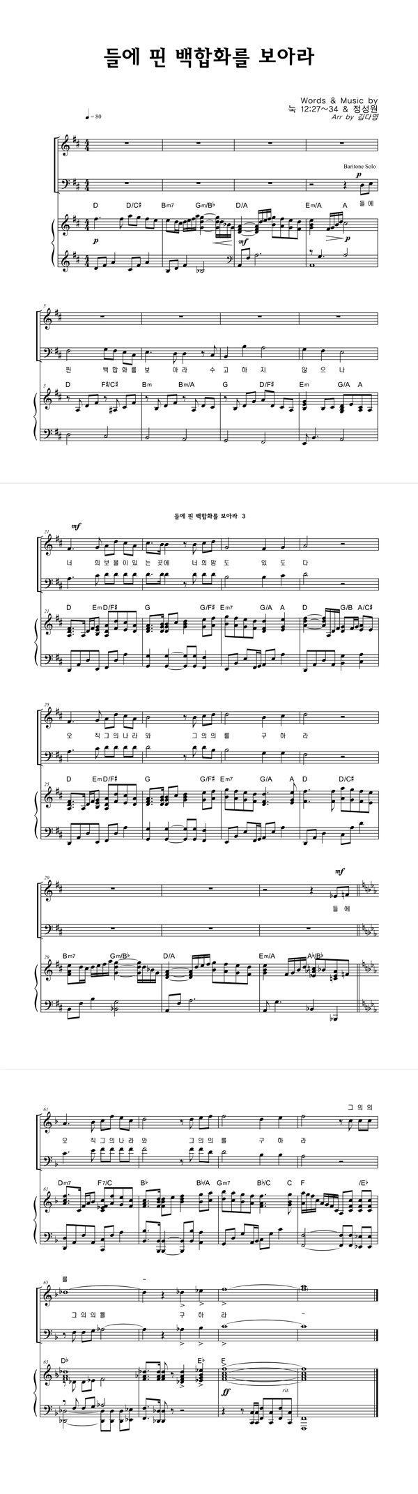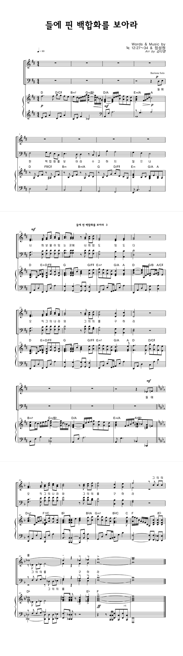 | 들에 핀 백합화를 보아라 | 성가 3부 + 피아노 반주 |
