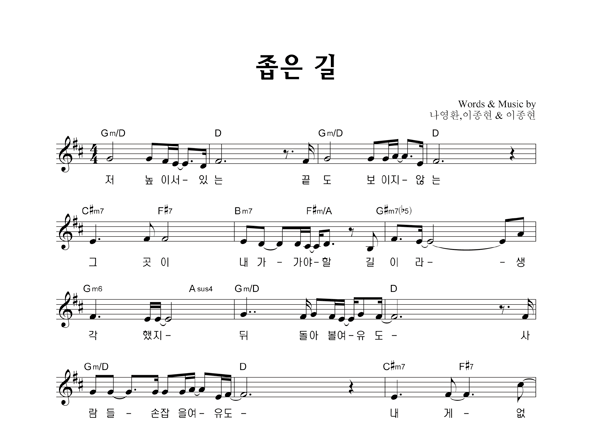 | 좁은 길 | 성가 2부 + 피아노 반주 |