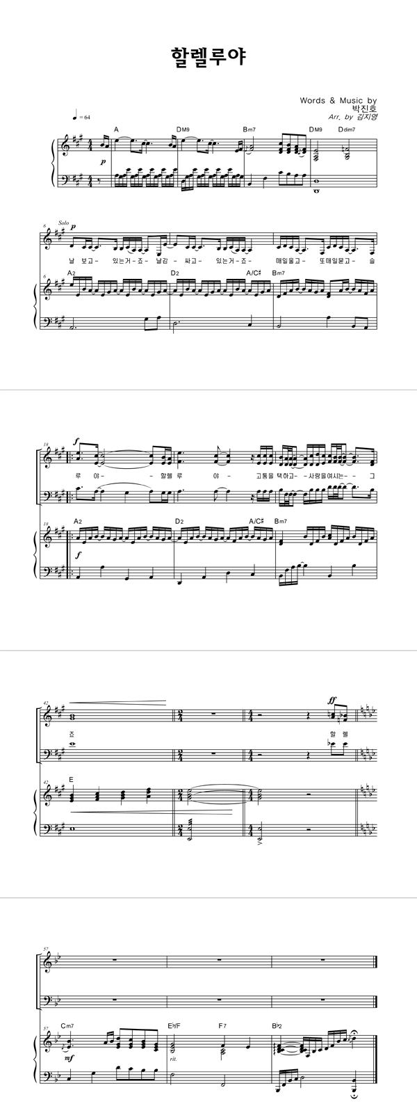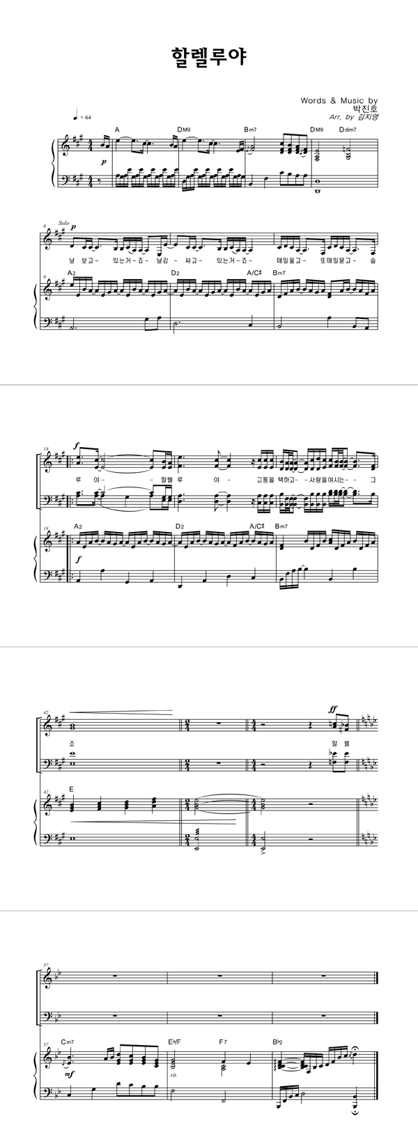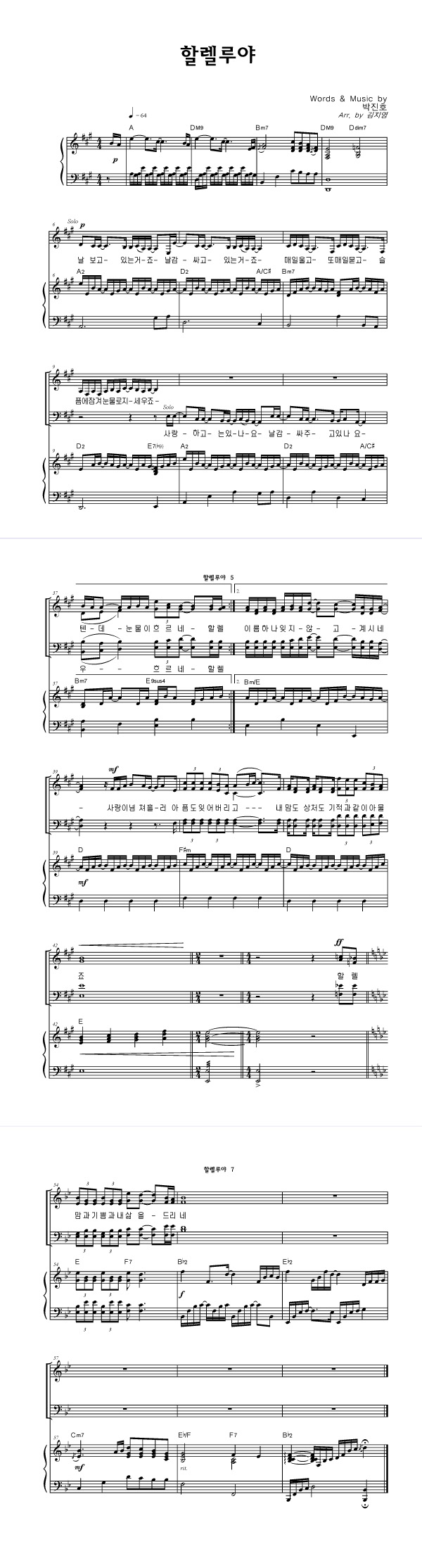 | 할렐루야 | 성가 3부 + 피아노 반주 |