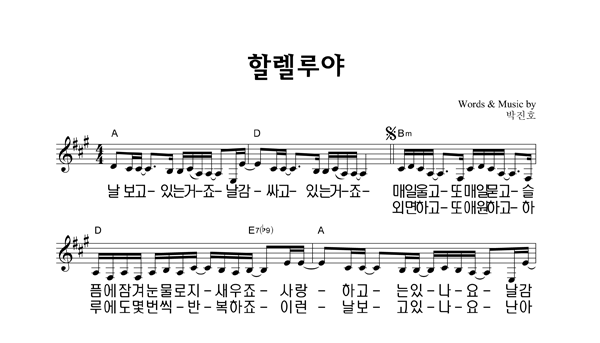| 할렐루야 큰글씨 | 성가 4부 + 피아노 반주 |