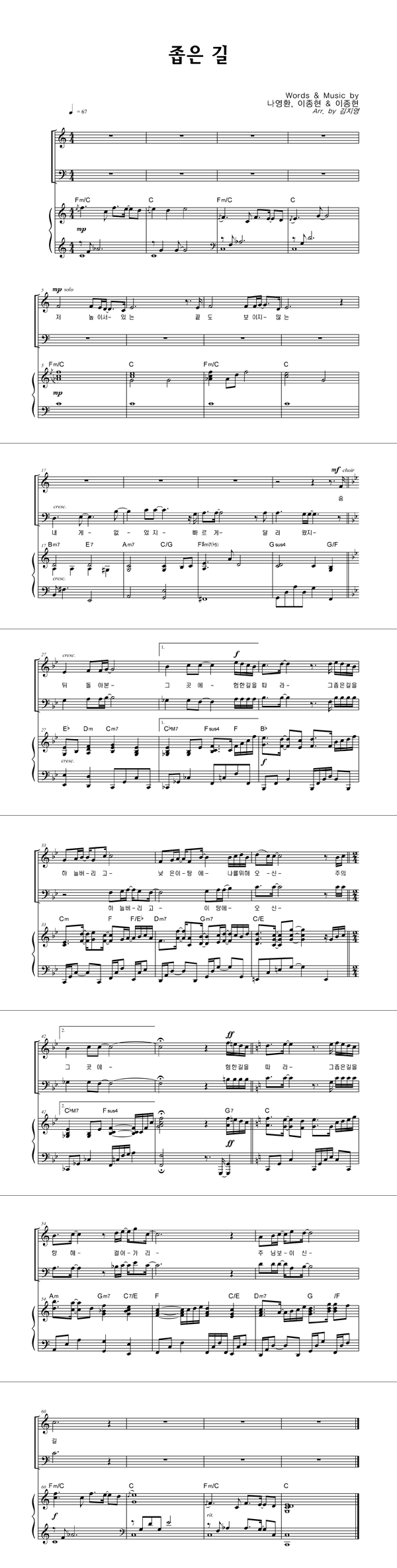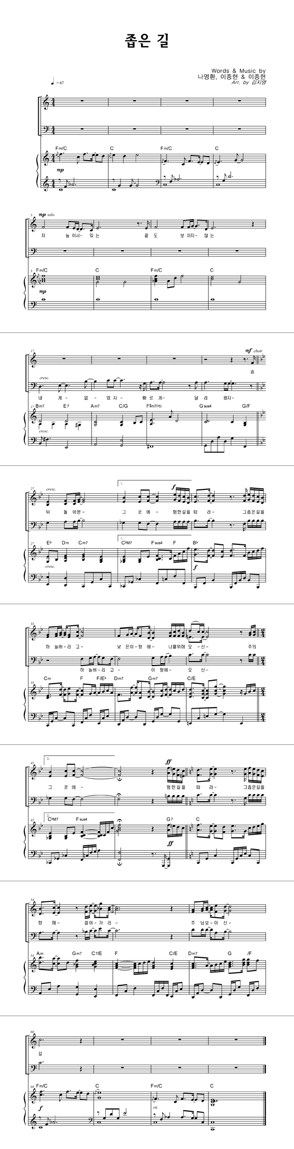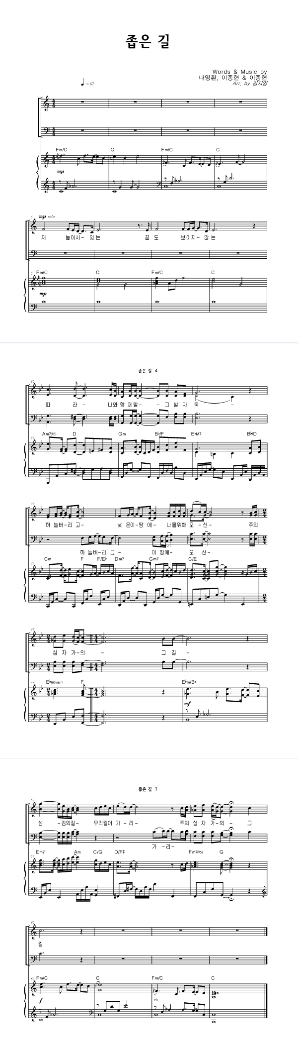 | 좁은 길 | 성가 3부 + 피아노 반주 |